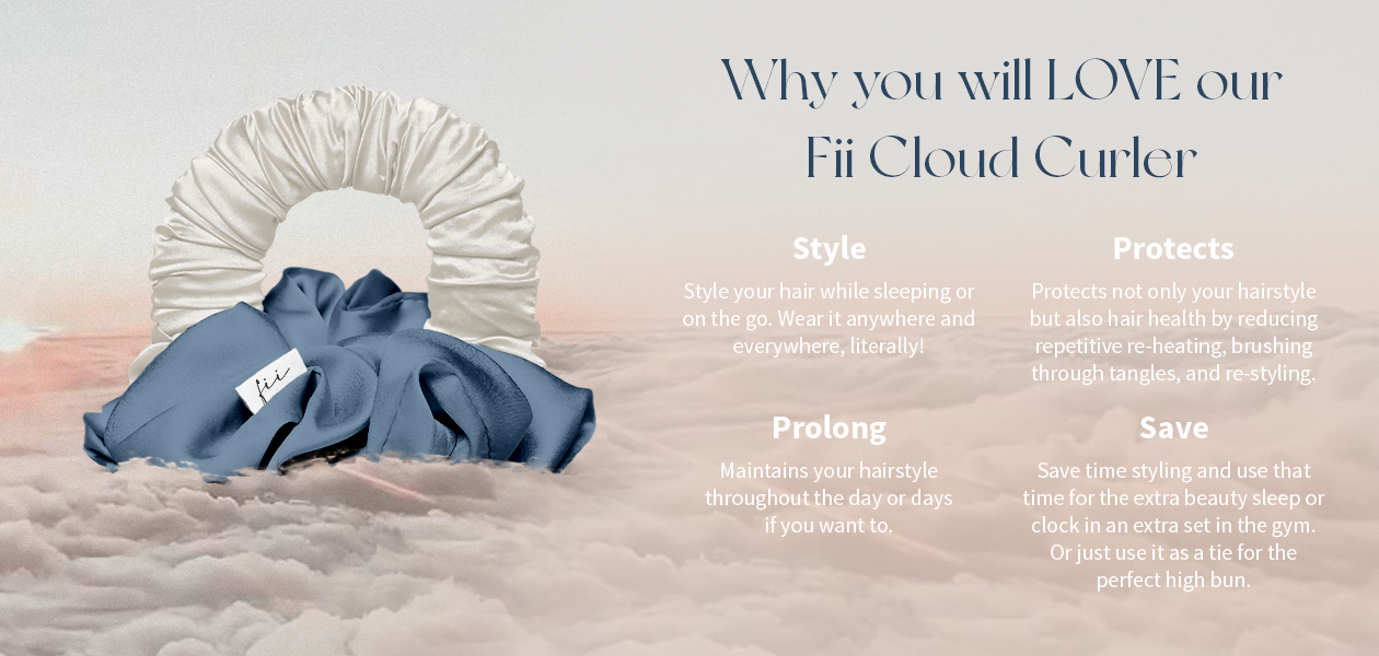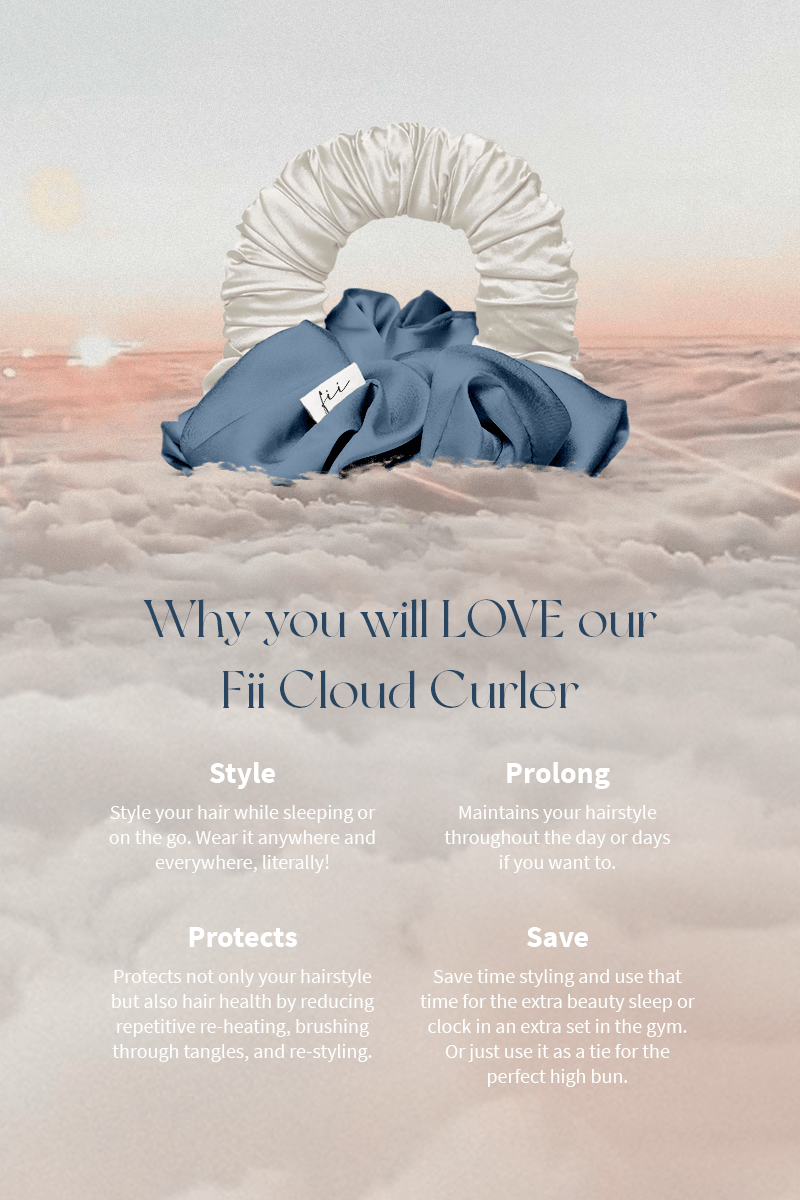 The Fii CloudCurler is the Original curling scrunchie that uses a proven natural curling technique to achieve effortless curls.